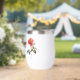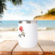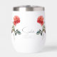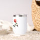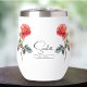 Birth month flower June Rose wine tumbler with an illustration of a rose flower. Below the flower, the name is written in an elegant script font. Beneath the name, it states "June - Rose," indicating that the owner's birth month is June and her birth flower is the rose. It is a personalised wine tumbler, created as a thoughtful gift for someone born in June.
