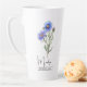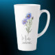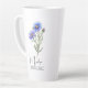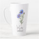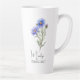 Birth month flower September Aster latte mug featuring an illustration of an aster flower. Below the flower, the name is written in an elegant script font. Beneath the name, it states "September - Aster," indicating that the owner's birth month is August and her birth flower is the gladiolus. It is a personalised mug, customised as a thoughtful gift for someone born in September.