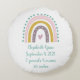 Birth Stats Boho Rainbow Pink Teal Gold Hearts Round Cushion