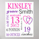Send me an email with the contact the seller button, with the information and colours you want and I'll make it for you to purchase. Please do not purchase until I've sent you the link with your babies information. It will be a direct view not public.