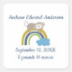 Personalise this adorably cute rainbow sleeping baby birth stats square stickers. A great gift for the new little baby boy and his parents.