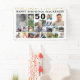 Celebrate any age birthday for him or her with a fun photo collage banner sign featuring 19 square pictures of photo memories through the years and personalised with your custom text and their age in your choice of font styles and colours as well as banner colour. The design features gold glitter confetti and shown in white with black text. OPTIONS: The sample is shown in a 3x5' size--other sizes are available on the ordering page or the design can be transferred to a poster, foam board, tapestry or other product or converted by the designer to a Digital Download file for local printing. ASSISTANCE: For help with design modification or personalisation, colour change, resizing or transferring the design or converting to a Download file, contact the designer BEFORE ORDERING via the Zazzle Chat MESSAGE tab or email makeitaboutyoustore@gmail.com.
