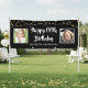 Celebrate any age birthday with this personalised, custom colour banner sign decoration featuring two photos of him or her, gold string lights and your custom text (the sample shows HAPPY # BIRTHDAY NAME) in your choice of font styles, text colour and background colour (shown with white text on black). CHANGES: Make font style and colour changes in EDIT. BANNER OPTIONS: The sample is shown in the 2.5x6' size; other sizes are available on the ordering page as well as the option of transferring the design to a foam board, poster, tapestry or other product or have the designer convert it to a DIGITAL DOWNLOAD file for printing locally BEFORE ordering. ASSISTANCE: For help with design modification or personalisation, colour change, resizing, transferring the design to another product or if you would like coordinating items, contact the designer BEFORE ordering via Zazzle Chat or email makeitaboutyoustore@gmail.com.
