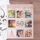 A glamourous and unique 50th (or any age) birthday gift or keepsake, celebrating her life with a collage of 8 of your photos. Personalise and add a name, age 50 and a date. Grey and dark rose gold coloured letters. Elegant and trendy blush pink background colour. Decorated with rose gold coloured faux glitter drips.