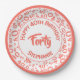 Birthday Age 40 Random Number Pattern Coral/White Paper Plate