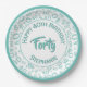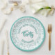 Birthday Age 40 Random Number Pattern Teal/White Paper Plate
