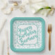 Birthday Age 40 Random Number Pattern Teal/White Paper Plate