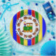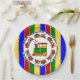 Its a Boy, Choo Choo Train Birthday Party Paper Plates with bold prime colours, bright red, blue, green, yellow and orange.