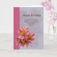 Lovely pink and gold alstroemeria flowers decorate this birthday greeting card. Customise the card with your own inside verse.