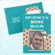 This card is great fun and good quality. I loved the humour inside and on the back. There is the opportunity to change the orientation of this card from landscape to portrait, which I did. It is relatively straightforward to amend the typeface to fit the new orientation. It was well packaged with no plastic. The printing on this card is excellent.