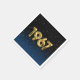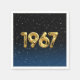 Gold foil balloons for 1967 birth year on gradient black and blue background with night stars for birthday party.