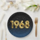 Gold foil balloons for 1968 birth year on gradient black and blue background with night stars for birthday party.