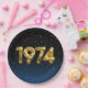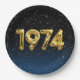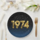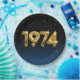 Gold foil balloons for 1974 birth year on gradient black and blue background with night stars for birthday party.