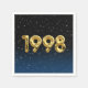 Gold foil balloons for 1998 birth year on gradient black and blue background with night stars for birthday party.