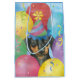 Happy birthday greetings with this cute design featuring a cute, party hat-wearing, Doberman Pinscher puppy surrounded by colourful balloons, confetti and streamers.