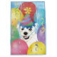 Happy birthday greetings with this design featuring a cute, party hat-wearing West Highland White Terrier puppy surrounded by colourful balloons, confetti and streamers.