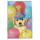 Happy birthday greetings with this cute design featuring a smiling, party hat-wearing Yellow Labrador Retriever puppy surrounded by colourful balloons, confetti and streamers.