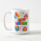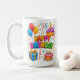 Let the confetti fly! This fun and festive birthday mug bursts with balloons, cake, gifts, and streamers—all centred around bold, rainbow-coloured “Happy Birthday” text. Designed by Callum AI to bring joy, colour, and cake-fuelled smiles to any birthday celebration.