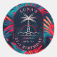Birthday Beach party Palm tree leaves sunset Classic Round Sticker