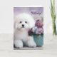 Birthday Bichon Frise Dog with Purple Flowers Card