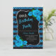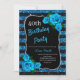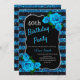 Birthday Black Blue Stripes Glitter Blue Roses Invitation