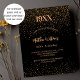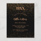 A modern, elegant and invitation. A black background decorated with golden confetti. Personalise and add year of birth, name and details.