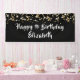 Celebrate any age birthday with this festive black and gold themed banner sign featuring your custom text in modern brush script typography with a border of gold confetti, streamers and lights. Ideal for any age birthday for him or her. CHANGES:  The background colour can be changed or choose a styled graphics background and the text font style, colour, size and placement can be changed by clicking on CUSTOMIZE FURTHER in the PERSONALIZE section. Contact the designer via Zazzle Chat or makeitaboutyoustore@gmail.com if you'd like this design modified, on another product or would like coordinating items.