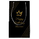 Celebrate her birthday with this elegant black gift bag featuring a gold princess crown and stripes. Personalise with her name for a memorable birthday celebration!