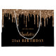 A gift bag for a girly and glamourous 21st (or any age) birthday. A classic black background with faux gold glitter drips, paint dripping look. Personalise and add a date, name and year 21. The name is written with a golden modern hand lettered style script.