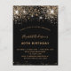 A modern, stylish and glamourous invitation for a 40th (or any age) birthday party. A black background decorated with faux glitter and sparkle. The name is written with a modern golden coloured hand lettered style script. Personalise and add your party details.