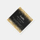 For a glamourous 50th (or any age) birthday party. A stylish black background. Decorated with faux gold confetti, sparkles. Personalise and add a name, age, date and a text. The name is written with a modern hand lettered style script.