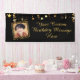 Honour the birthday person (man or woman) and welcome your party guests with this personalised black and gold stars themed banner with your custom message in an editable script font ideal for celebrating any year birthday. PHOTO TIP: For fastest/best results, choose a photo with the subject in the middle and/or pre-crop it to a square shape BEFORE uploading and it will fill in the photo space perfectly. Contact the designer via Zazzle Chat or makeitboutyoustore@gmail.com if you’d like this design modified, on another product or would like coordinating items.