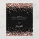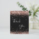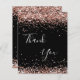 A feminine and elegant birthday thank you card. A black background colour. With rose gold confetti. On front, large hand lettered script and the text: Thank You.