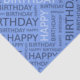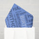 HAPPY BIRTHDAY HAPPY BIRTHDAY. There is no mistaking the message on this smart blue tissue paper! The typographic design using the words HAPPY and BIRTHDAY in shades of blue on a blue background, and you can personalise it with a name in light blue script.