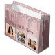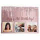 For a girly and glamourous 21st (or any age) birthday. A blush pink background with faux glitter drips, paint dripping look. Personalise and add 3 photos and age 21.