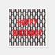 Happy birthday in red text with white bowling pins on black.