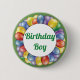 Birthday Boy Balloons Button Blue Yellow Green