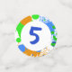 Personalised name, age and photo birthday confetti. Cute little anime boy playing video games with a blue, orange and green paint splatter background done in an ai watercolor style illustration.