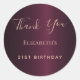 For an elegant 21st (or any age) birthday. A burgundy background colour. Personalise and add a name and age 21.. Thank you is written with a modern hand lettered style script. Rose gold text.