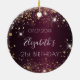 Birthday burgundy rose gold sparkles name elegan ceramic tree decoration