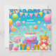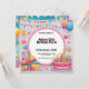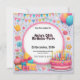 This vibrant and playful birthday party invitation template features a colourful design perfect for children's celebrations. The illustration showcases a large, festive birthday cake adorned with candles, bright balloons, and a variety of fun party decorations, including a crown, cupcakes, gifts, and bunting banners. The whimsical elements create a joyful atmosphere, making it ideal for sending invitations to family and friends for a memorable birthday party. This customisable and editable invitation allows you to add personal details, creating a unique keepsake for any birthday event. Perfect for digital or printable use, this design adds a touch of fun and excitement to your special day, ensuring a memorable celebration for everyone.