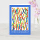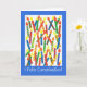A brightly coloured Birthday Card with candles and 'Happy Birthday' in Spanish, from a handpainted paper collage by Judy Adamson. The inside is left blank for your own message.