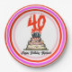 Birthday Cake on Fire with 40 Candles Paper Plate