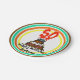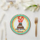 Happy 50th birthday - personalised party supplies, party decorations, birthday party paper goods. A delicious-looking, three-tiered chocolate birthday cake on fire with 50 birthday candles. Personalise the birthday message and birthday person's name. Retro colour combo of turquoise, orange, yellow and brown for that 1970s vibe.
