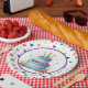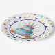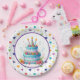 Colourful Birthday Paper Plate With Heart Shaped Balloons With Birthday Cake Centre With Candles On Top