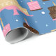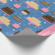 Add a custom touch to your child's birthday party with this adorable personalised wrapping paper. Gift wrap has a pattern of cakes with candles on a blue and pink background. Add two custom messages, such as happy birthday and your little one's name and age.