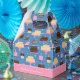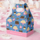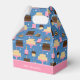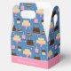 Add a custom touch to your child's birthday party with this adorable personalised favour box. Box has a pattern of cakes with candles on a blue and pink background. Add a custom message, such as happy birthday and your little one's name and age.