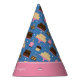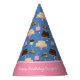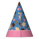 Add a custom touch to your child's birthday party with this adorable personalised paper party hat. Hat has a pattern of cakes with candles on a blue and pink background. Add a custom message, such as happy birthday and your little one's name.