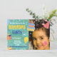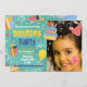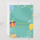 Colourful birthday cake, presents, balloons, streamers, stars, and a birthday hat over your photo of the birthday girl or birthday boy. Customise with your child's party information.