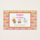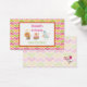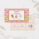 A business card template with whimsical birthday animals personalised with your event name and says thank you for coming. Designed with a cute illustration of a smiling lion wearing a party hat, a fuzzy sheep with birthday balloons and a birthday cake with 3 candles.. Set on a pink, green and yellow geometric pattern. Perfect for 3 year old's birthday but also good for birthdays of all ages.